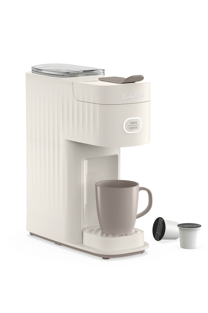 Begin your day with the Cuisinart Soho™ Single-Serve Coffeemaker. With a slim and sophisticated profile, this coffee maker is designed to save countertop space, making it ideal for smaller living spaces. Brew one rich cup at a time to take on the go or sit down for work or relaxation. The unit is pod compatible with a brew intensity guide for cup sizes in 6-, 8-, 10-, and 12-ounces. The 2-stage drip tray reduces splashes and is removable to accommodate a 20-ounce travel mug. With easy settings, LED lighting, and fast, flavorful brewing, the first cup of the day has never tasted so good. Morning rituals should be simple and minimal—nothing more, nothing less. That's Cuisinart Soho.