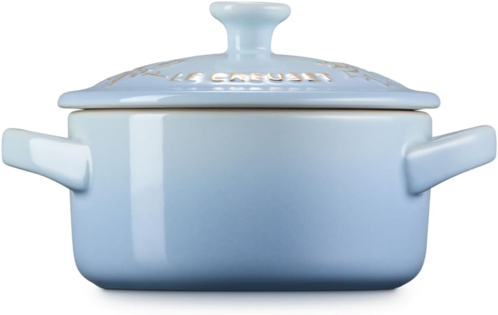 8 oz. Holly Collection Gold Applique Mini Round Cocotte - COASTAL BLUE