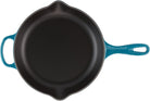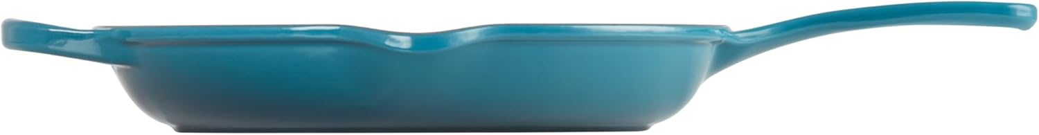 The enameled cast iron Signature Skillet is a versatile kitchen essential for searing, sauteing, stir-frying and more. The interior surface is finished with a black satin enamel that eliminates the need for the traditional seasoning and maintenance of raw cast iron. Specially formulated for higher surface temperature cooking, the enamel develops a natural patina over time making it virtually non-stick and easy to clean.