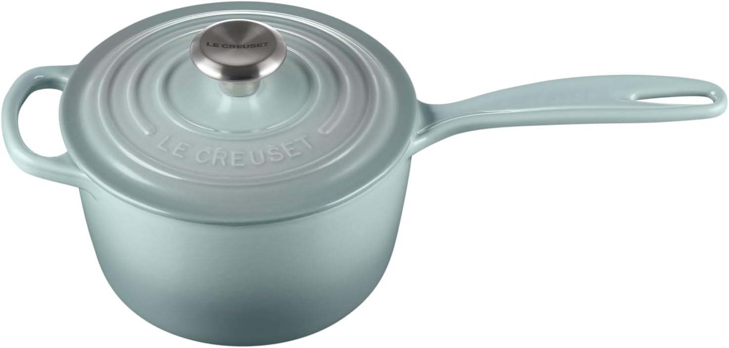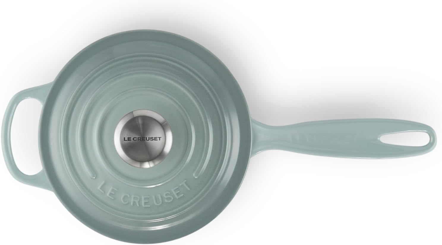 The enameled cast iron Signature Saucepan is a kitchen staple perfect for making sauces, but also for side dishes, preparing grains, poaching, simmering and reheating. The smoothly curved interior and rounded base are ideal for stirring and reducing sauces, while an extended helper handle and a contoured main handle provide added control for maneuvering from the kitchen to the table.
