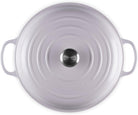 The Le Creuset enameled cast iron Braiser is uniquely designed to provide steady, even heat to transform tough cuts of meat and hearty vegetables into tender, flavorful dishes. The wide base allows ingredients to be placed in a single layer for searing without crowding; once liquid is added, the domed lid circulates steam to lock in moisture and flavor. The versatile shape of the braiser also makes it perfect for shallow frying, steaming, stews, casseroles and serving at the table.