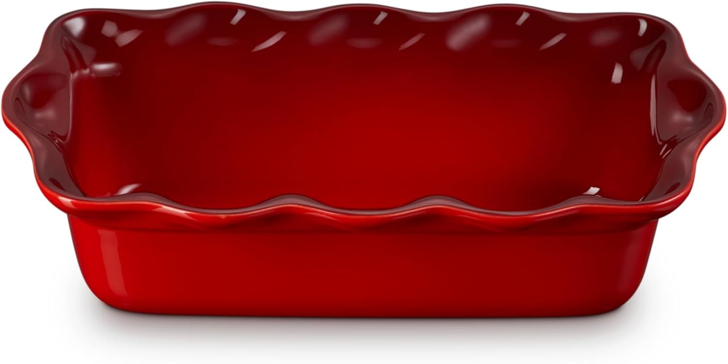 Iconic heritage scalloped handles for easy lifting from oven to table