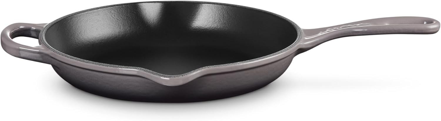 The enameled cast iron Traditional Skillet is a versatile kitchen essential for searing, sauteing, stir-frying and more. The interior surface is finished with a black satin enamel that eliminates the need for the traditional seasoning and maintenance of raw cast iron. Specially formulated for higher surface temperature cooking, the enamel develops a natural patina over time making it virtually non-stick and easy to clean.
