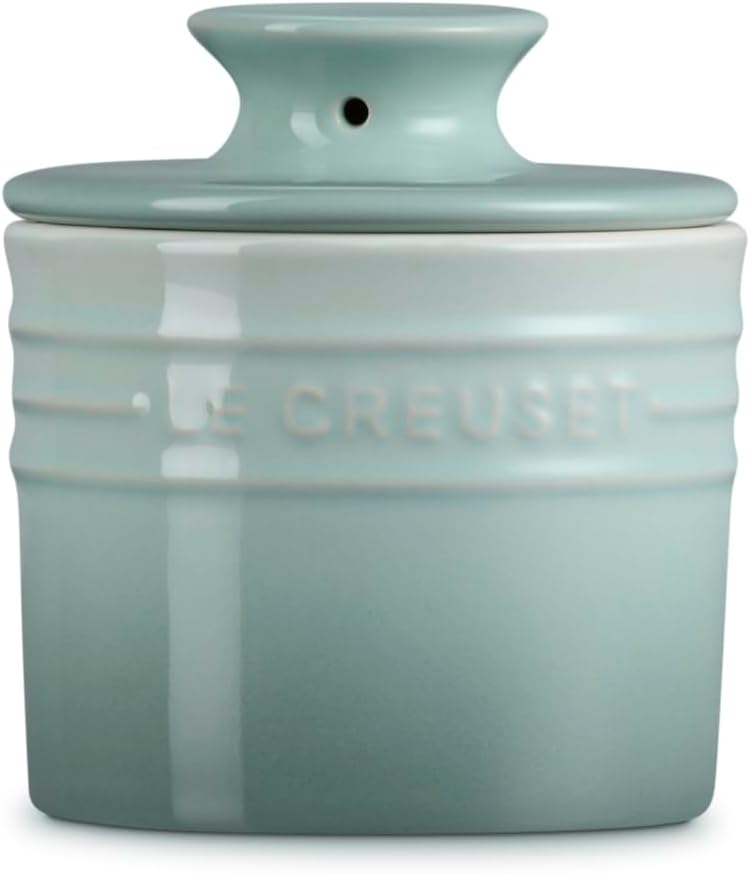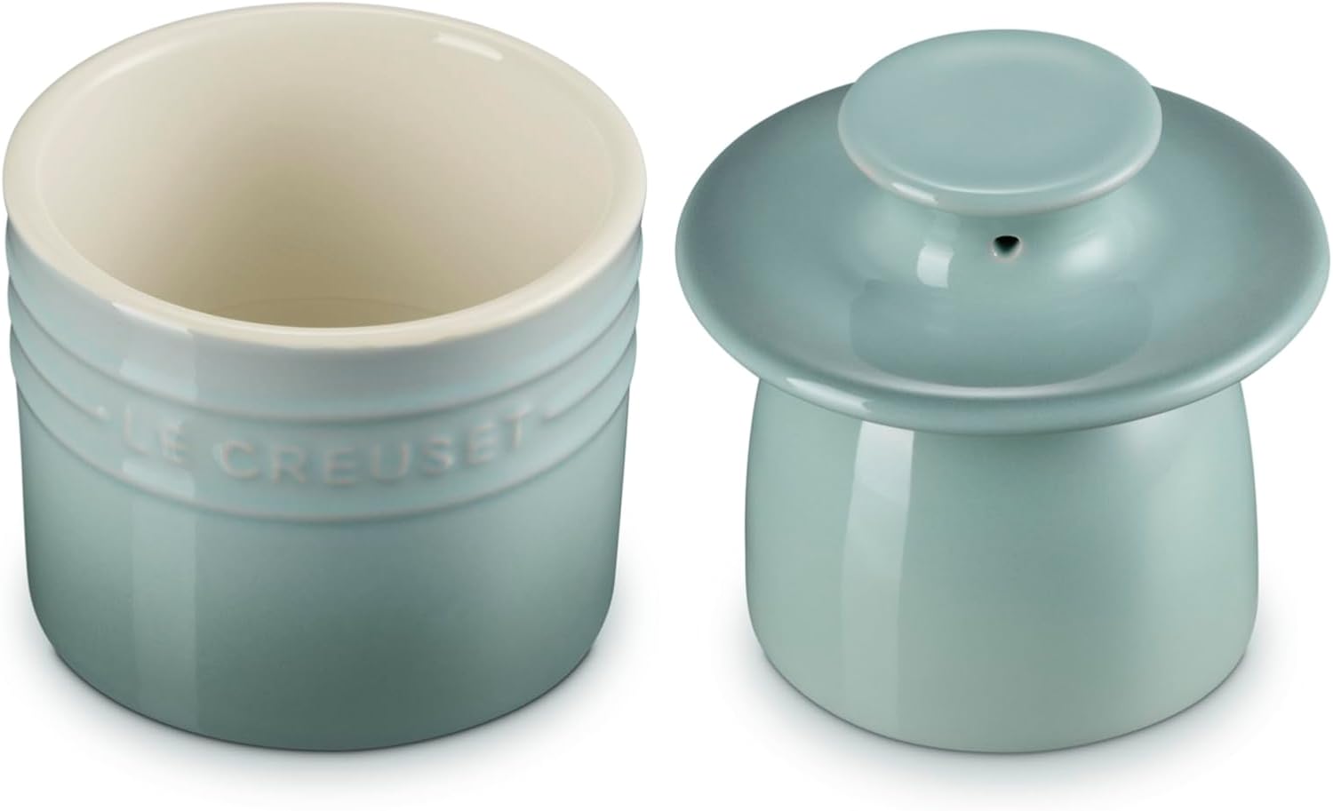 The Le Creuset Butter Crock has an airtight seal to prevent butter from spoiling while keeping it at the perfect temperature for spreading and cooking. The crock is inspired by classic designs, blocking out air that can ruin butter while approximating room temperature to keep the butter soft without melting. Crafted from premium stoneware and finished with a vibrant glaze which is easy to clean, dishwasher-safe, and resistant to chips, scratches and stains.
