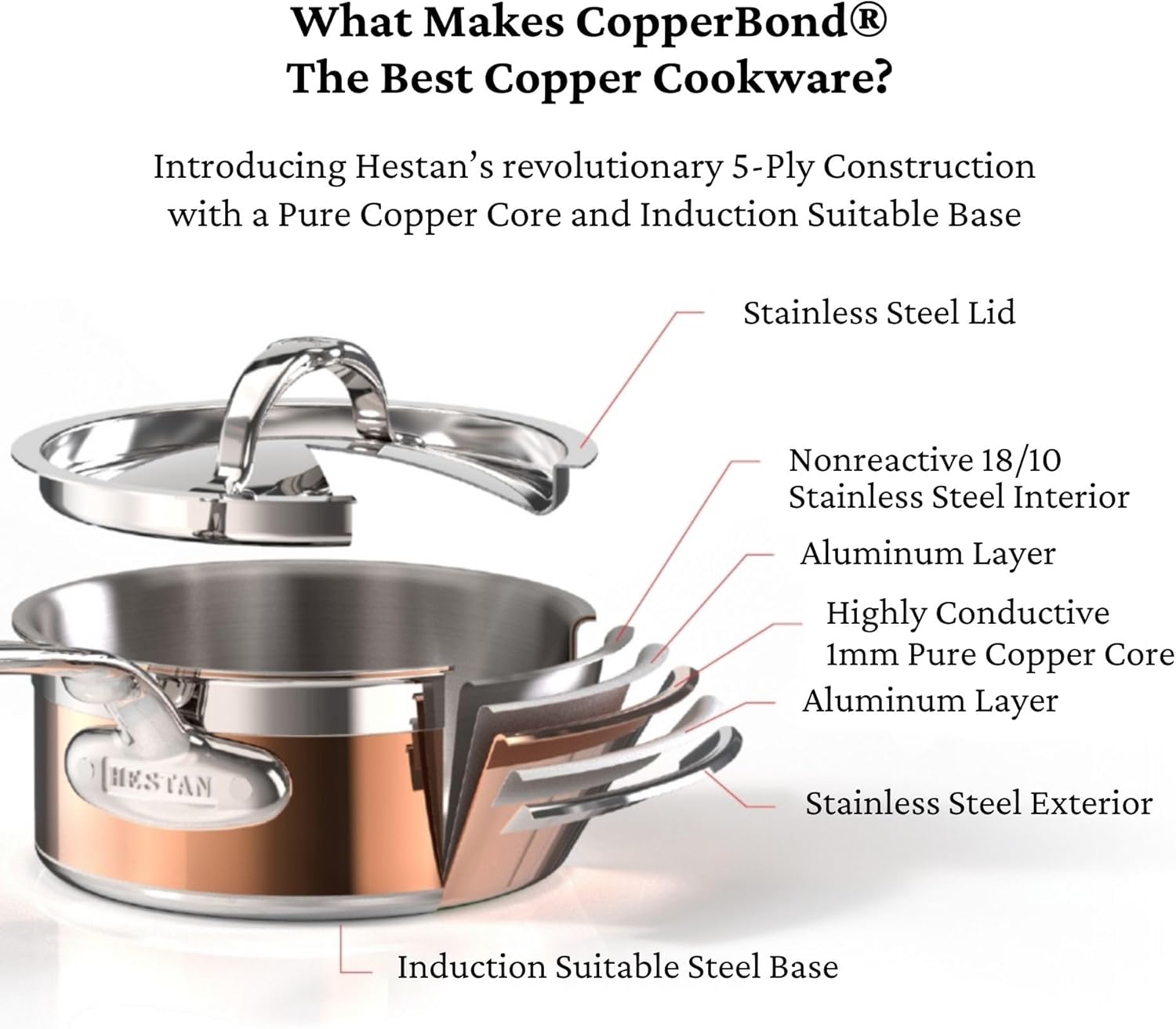 The ultimate cookware set of our most popular CopperBond pieces: 8.5inch and 11inch skillets, 1.5qt and 3qt saucepans with lids, 3.5qt sauté pan with lid, and 6qt stockpot with lid, for quick, even heating and exceptional temperature control.