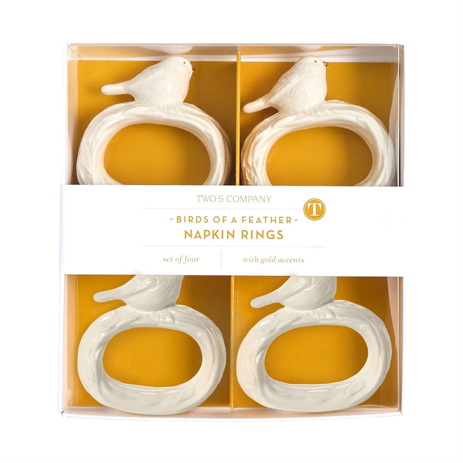 The Birds of a Feather Set of 4 Bird Napkin Rings brings a charming, nature-inspired touch to your table setting. Made from ceramic and presented in a stylish gift box, these napkin rings blend elegance with whimsy. Perfect for special occasions, spring gatherings, or everyday dining.