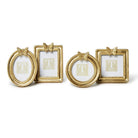 Elevate your cherished memories with the Golden Butterfly Set of 4 Photo Frames from Two's Company. Crafted with a luxurious gold leaf finish, each frame showcases a unique shape, including round, oval, horizontal rectangle, and vertical rectangle. Made with quality resin and glass, these frames exude elegance and sophistication in every detail.