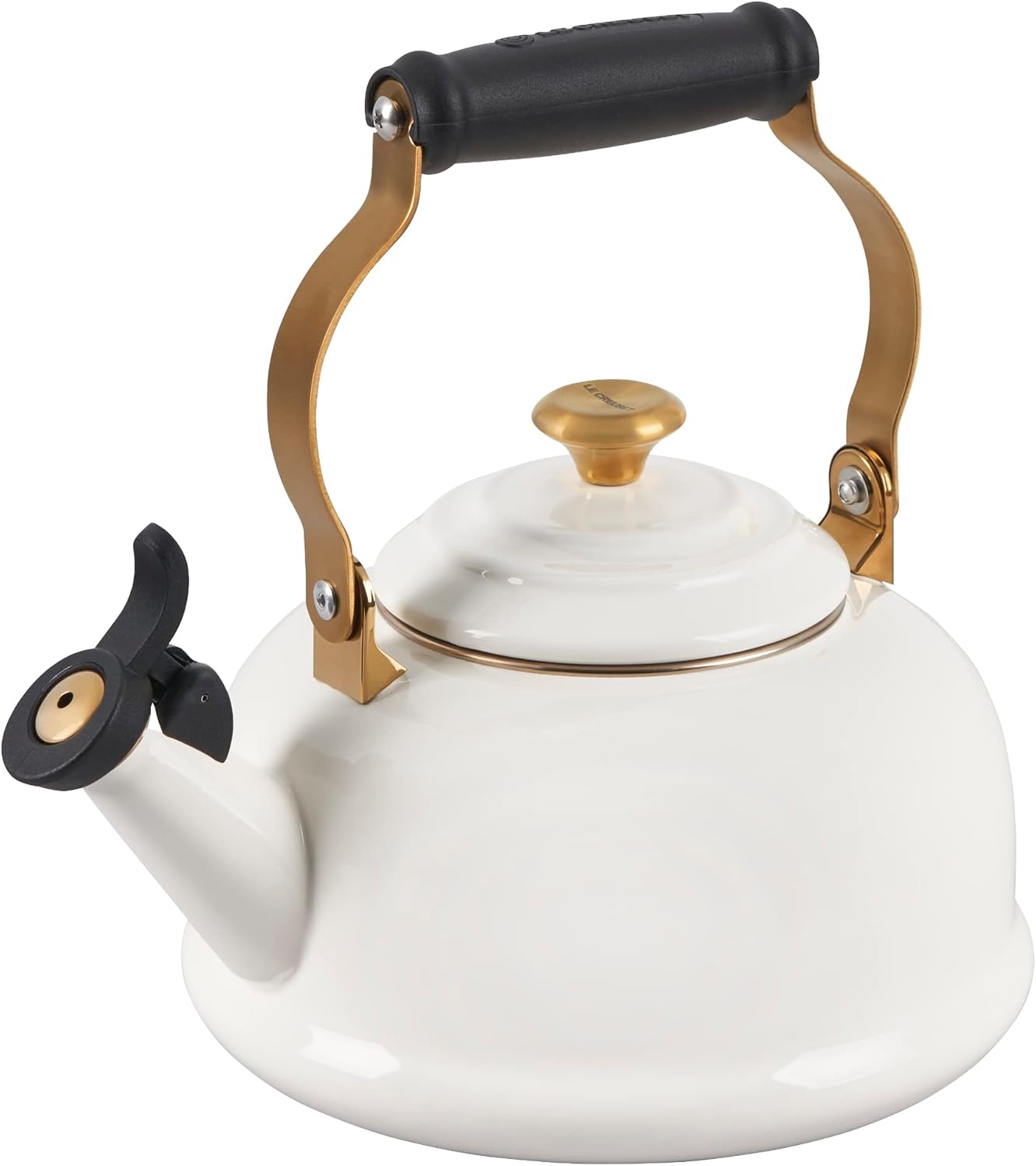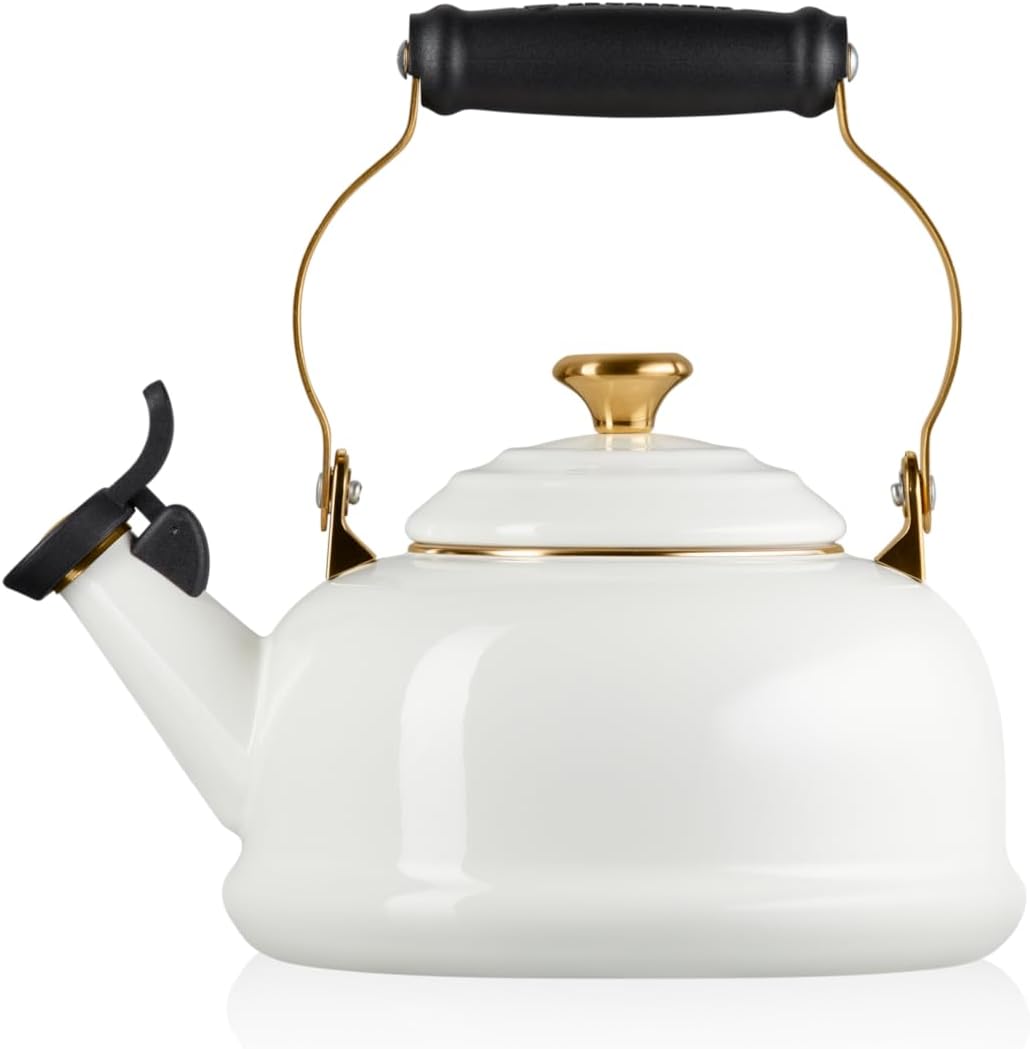 Classic Whistling Kettle - GOLD KNOB- WHITE