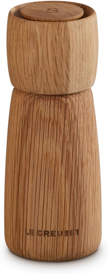 With a modern silhouette and superior grinding performance, the Stoneware Alpine Salt Mill will season every dish to perfection. It features a stoneware body in Le Creuset’s iconic colors and is topped with a white oak wood rim and adjusting wheel that highlights the unique, natural grain of the wood. The patented, adjustable ceramic grinding mechanism ensures a consistent and even grind of all types of peppercorns and salt, while the clever top grinding design keeps counters and tables clean. Both functional and beautiful, the generously sized mill is easy to fill and clean.