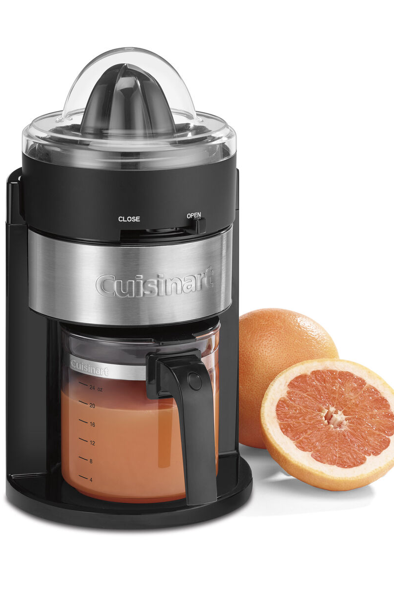 Engineered for optimal versatility and convenience, this first-of-its-kind unit provides the option to juice directly into an integrated 22 oz carafe or a single-serve drinking glass. The universal juicing cone quickly turns any citrus fruit, from small limes to large grapefruits into fresh, delicious juice. Three pulp settings and a cover-activated Final-Spin feature ensure users get the most juice with just the right amount of pulp. Carafe includes a lid that shuts securely for easy refrigerator storage.