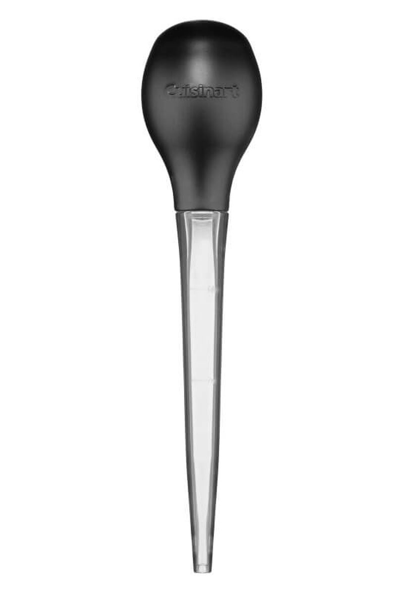 The Cuisinart® Baster keeps meats moist and is designed with a flat spot on the blub that will keep it from rolling off the counter. Baster has easy-to-read measure marks and includes a cleaning brush and is dishwasher safe.