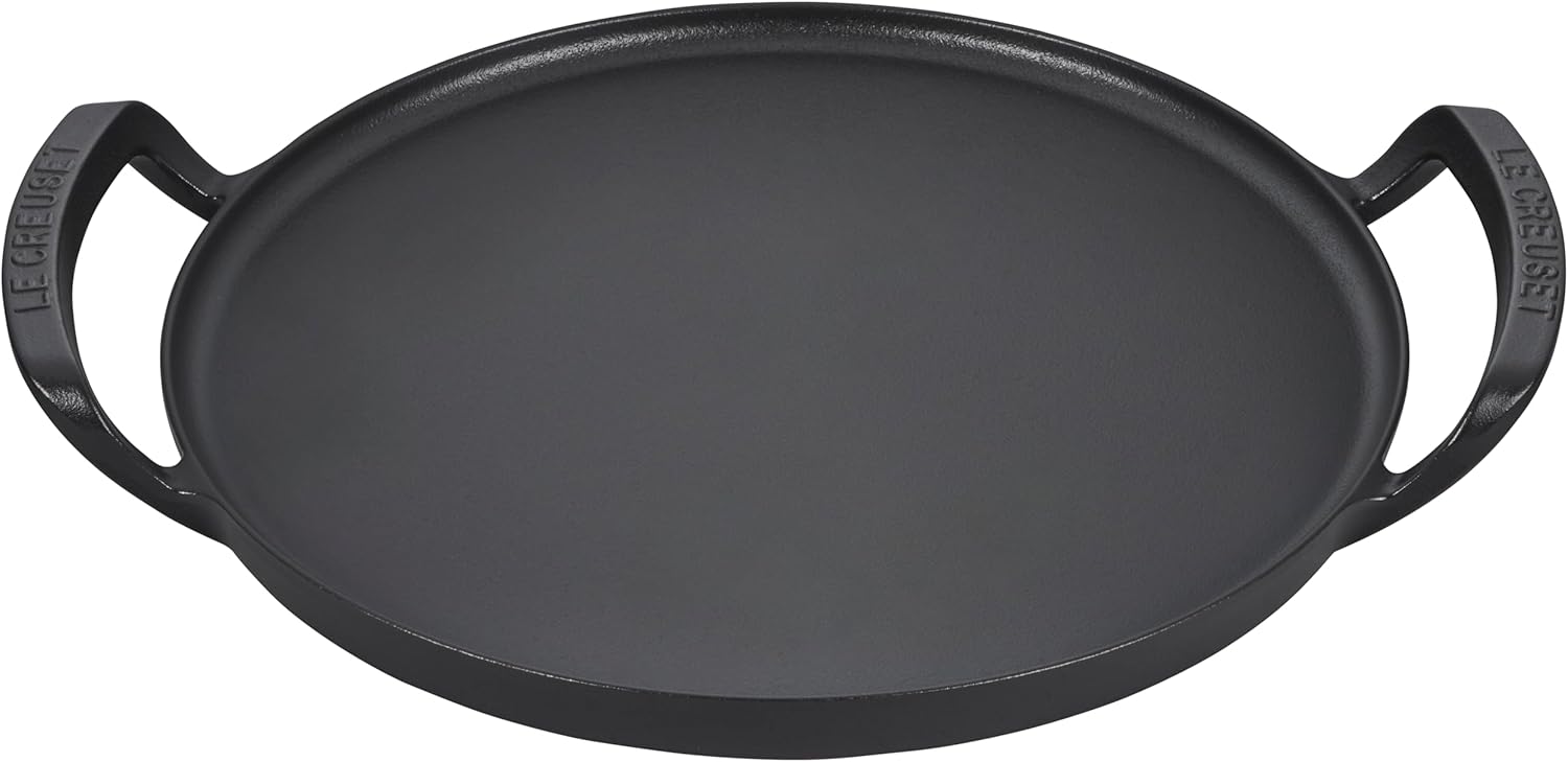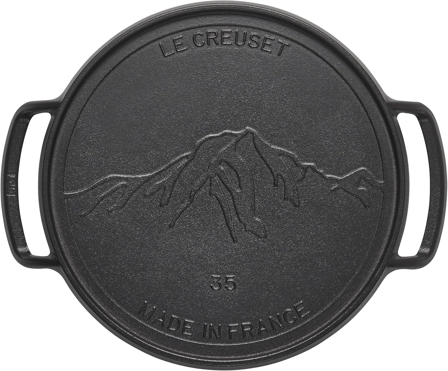 Go beyond the kitchen with the Alpine Outdoor Pizza Pan – it’s ideal for baking, roasting, searing and griddling outdoors. Crafted from enameled cast iron and specifically designed for cooking over an open flame, the pizza pan is completely encased in a rugged matte black enamel that is ready to use and requires no seasoning. It’s perfectly sized to accommodate a large pizza, with superior heat distribution for a crispy crust. The raised loop handles and low sides make it easy to maneuver on the grates, yet with a low-profile design that allows grill hoods to close. Durable and easy to clean, the Alpine Outdoor Pizza Pan is ideal for not only pizza and bread, but for seared burgers, pancakes, fried eggs, toasted sandwiches and more.