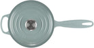 The enameled cast iron Signature Saucepan is a kitchen staple perfect for making sauces, but also for side dishes, preparing grains, poaching, simmering and reheating. The smoothly curved interior and rounded base are ideal for stirring and reducing sauces, while an extended helper handle and a contoured main handle provide added control for maneuvering from the kitchen to the table.