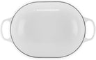 Perfect for sautéing, shallow frying, steaming and serving dishes straight to the table, the enameled cast iron Signature Oval Casserole can handle everything from roasts and whole fish to vegetables and side dishes. The elongated oval shape is ideal for larger cuts of meat, hearty stews and baked casseroles meant to share. The sloped sides and wide cooking surface make stirring and serving a breeze. Use it with the lid as a traditional casserole for family meals, or without as a roaster or buffet dish when entertaining guests.
