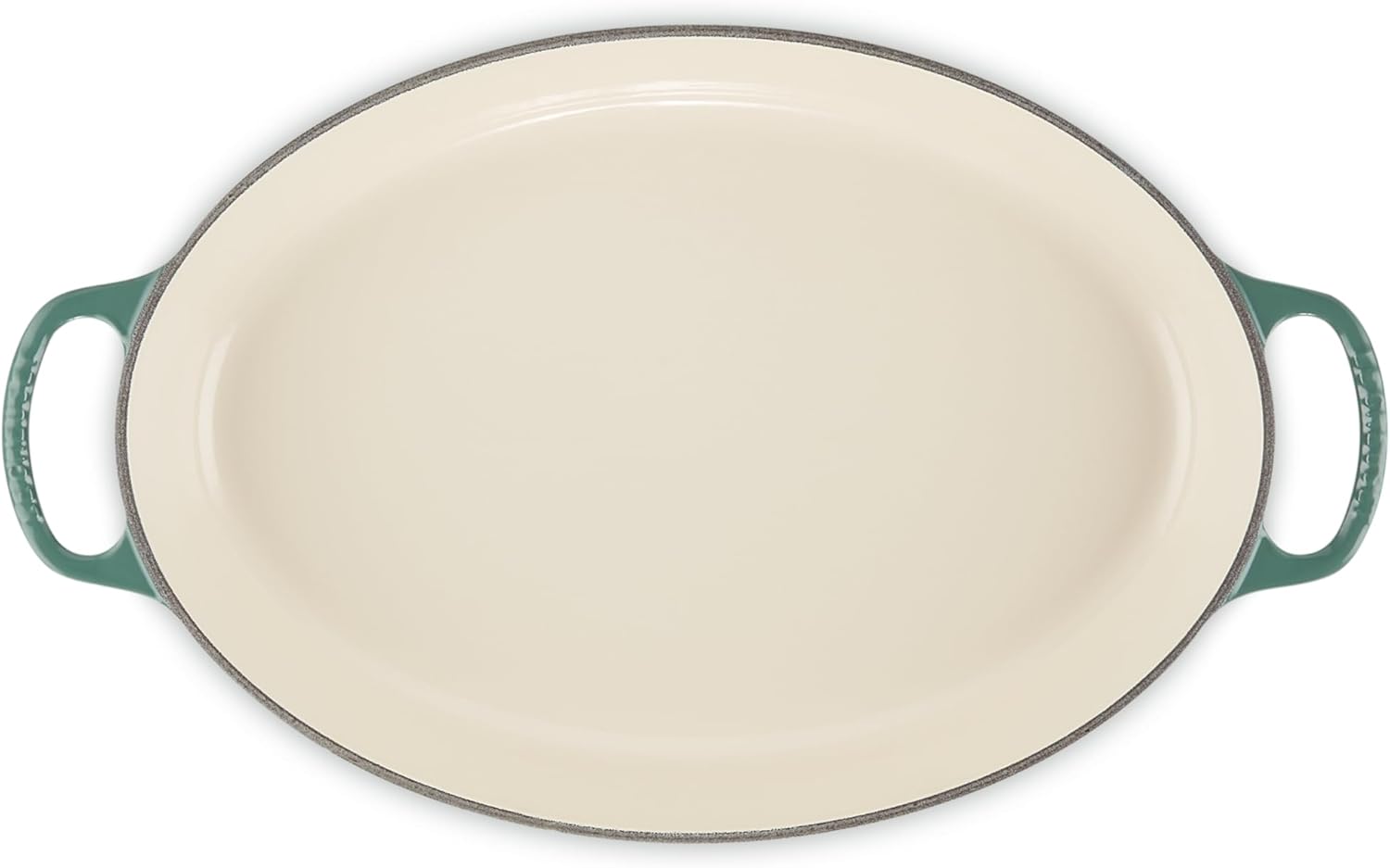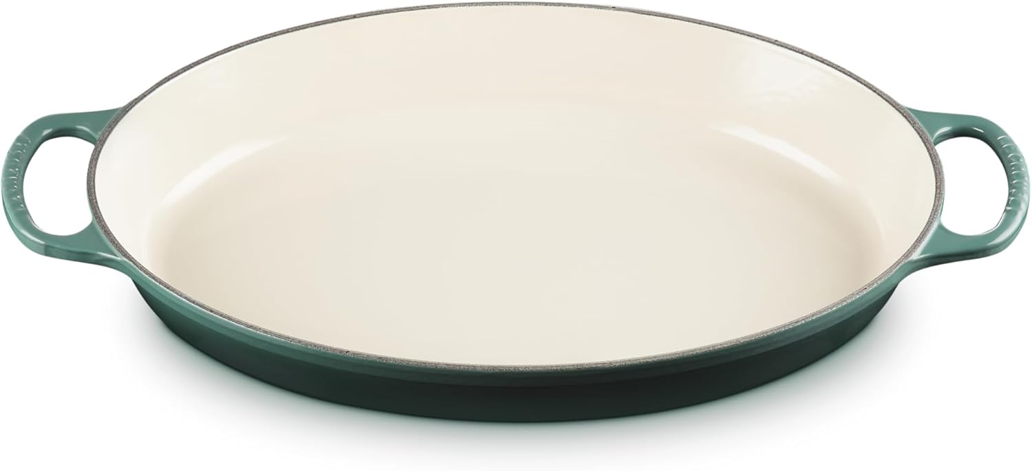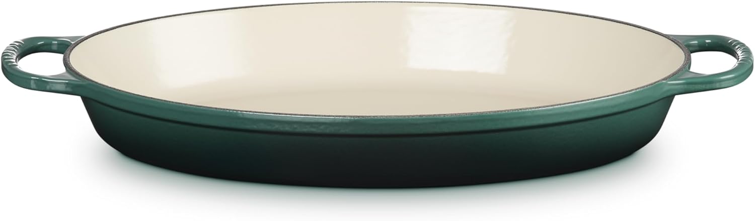 Crafted from our legendary enameled cast iron, the Signature Oval Baker has exceptional heat distribution and retention qualities to lock in flavor and keep dishes warm or cold at the table. The vibrant enameled surface minimizes sticking and staining, requires no pre-seasoning, and is easy-to-clean.