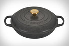 The Le Creuset enameled cast iron Braiser is uniquely designed to provide steady, even heat to transform tough cuts of meat and hearty vegetables into tender, flavorful dishes. The wide base allows ingredients to be placed in a single layer for searing without crowding; once liquid is added, the domed lid circulates steam to lock in moisture and flavor. The versatile shape of the braiser also makes it perfect for shallow frying, steaming, stews, casseroles and serving at the table.