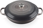 The Le Creuset enameled cast iron Braiser is uniquely designed to provide steady, even heat to transform tough cuts of meat and hearty vegetables into tender, flavorful dishes. The wide base allows ingredients to be placed in a single layer for searing without crowding; once liquid is added, the domed lid circulates steam to lock in moisture and flavor. The versatile shape of the braiser also makes it perfect for shallow frying, steaming, stews, casseroles and serving at the table.