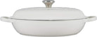 The Le Creuset enameled cast iron Braiser is uniquely designed to provide steady, even heat to transform tough cuts of meat and hearty vegetables into tender, flavorful dishes. The wide base allows ingredients to be placed in a single layer for searing without crowding; once liquid is added, the domed lid circulates steam to lock in moisture and flavor. The versatile shape of the braiser also makes it perfect for shallow frying, steaming, stews, casseroles and serving at the table.