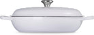 The Le Creuset enameled cast iron Braiser is uniquely designed to provide steady, even heat to transform tough cuts of meat and hearty vegetables into tender, flavorful dishes. The wide base allows ingredients to be placed in a single layer for searing without crowding; once liquid is added, the domed lid circulates steam to lock in moisture and flavor. The versatile shape of the braiser also makes it perfect for shallow frying, steaming, stews, casseroles and serving at the table.