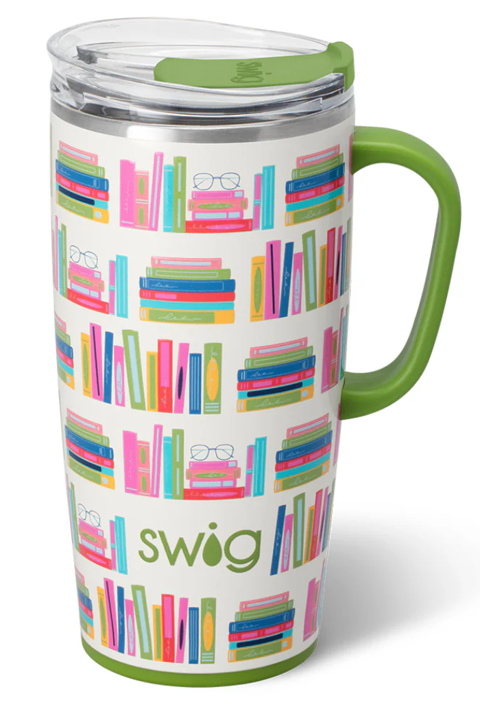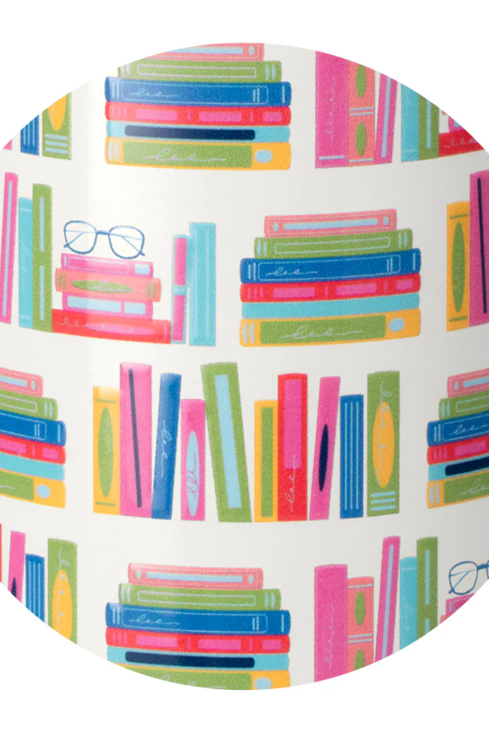We've got it handled! β This cup is a page turner! π Vintage-colored books line up on a glitter parchment background to provide the coziest reading companion.