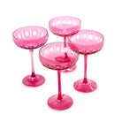 Indulge in a whimsical soirèe with our Set of 4 Pink Hand Engraved Coupe Glasses. Each glass boasts intricate hand engravings that catch the light, creating a mesmerizing display. Perfect for serving cocktails or champagne, these 12 oz glasses elevate any gathering.