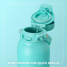 This innovative push-button cap with locking mechanism makes hydrating on the go leak-free and worry-free. Pop open the top to easily sip and flip open the cap to refill without the inconvenience of twisting it off. The innovative lid design gives you the option to sip freely or chug quickly. Grab-and-go flex handle is convenient for carrying on hikes and hooking in lockers.