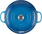The Le Creuset enameled cast iron Braiser is uniquely designed to provide steady, even heat to transform tough cuts of meat and hearty vegetables into tender, flavorful dishes. The wide base allows ingredients to be placed in a single layer for searing without crowding; once liquid is added, the domed lid circulates steam to lock in moisture and flavor. The versatile shape of the braiser also makes it perfect for shallow frying, steaming, stews, casseroles and serving at the table.