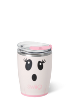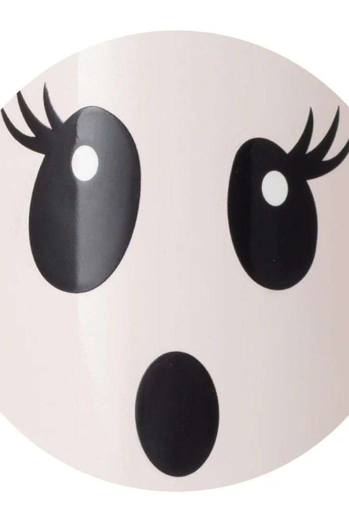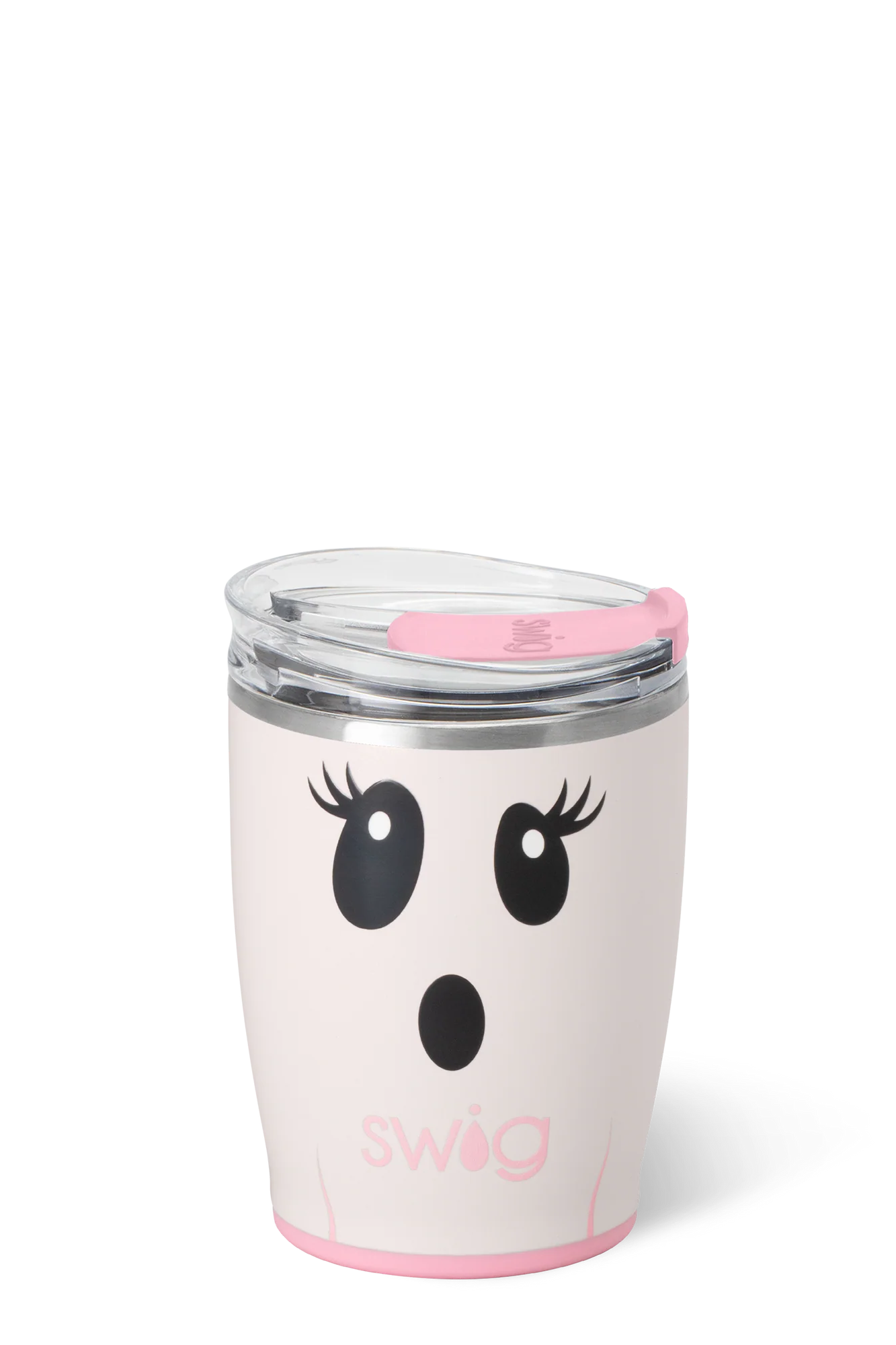 Get going and get sipping! π§ This ghost character comes to life with its whimsical expression on a pale glitter pink background.