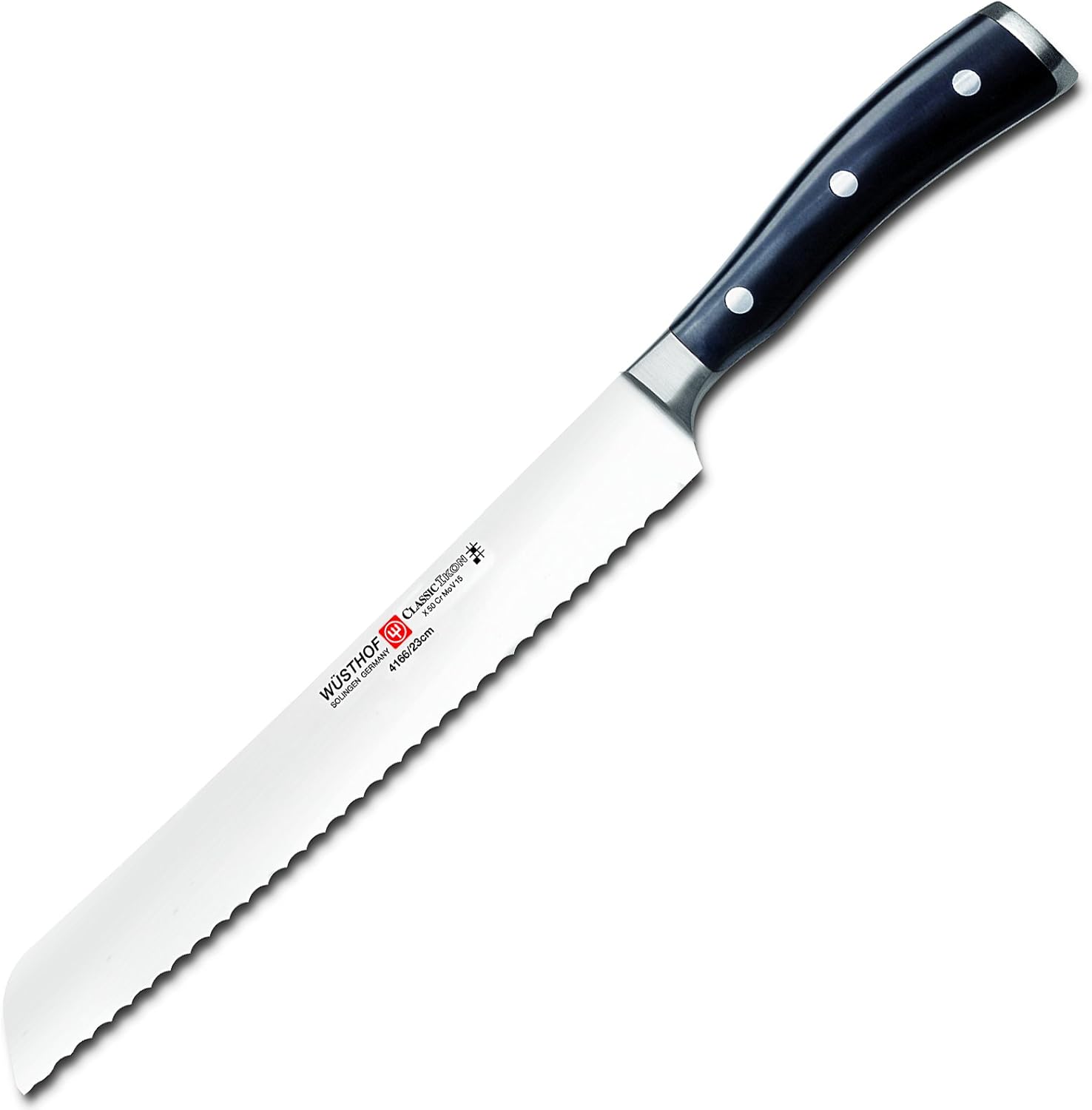 A classic amongst the range of knives that belong in every kitchen: as well as bread, this knife is suitable for use on hard-skinned vegetables and fruit, as well as for roasts, especially those with crackling. The concave (inwardly curved), serrated edge of the knife works like the teeth of a saw, but is much finer, so no pressure is required to cut any sort of bread and even a hard crust will allow a clean cut.