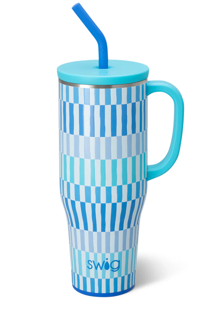 Hydrating has never been easier with our 40oz Insulated Mega Mug! A cup holder-friendly frame, a comfort-grip handle, and a plastic straw with a silicone flexi-tip all come together to create your new favorite Swig.