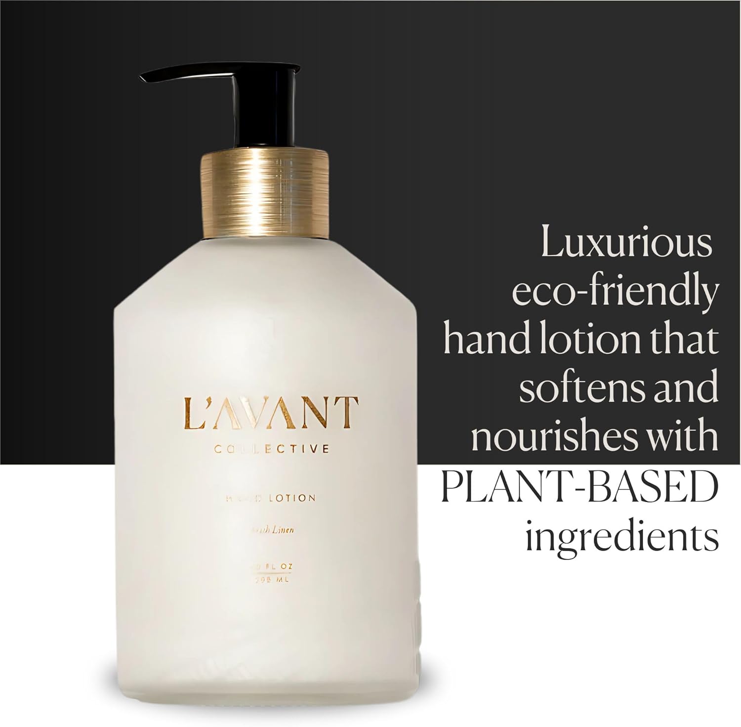 Luxurious and ultra-hydrating, L’AVANT Hand Lotion is equal parts pampering and protection. Lightweight, non-greasy, and delicately scented, our lush moisturizing formula is like a spa treatment for your hands. It's packed with nourishing, revitalizing, plant-based ingredients, within a beautifully crafted glass bottle dispenser.