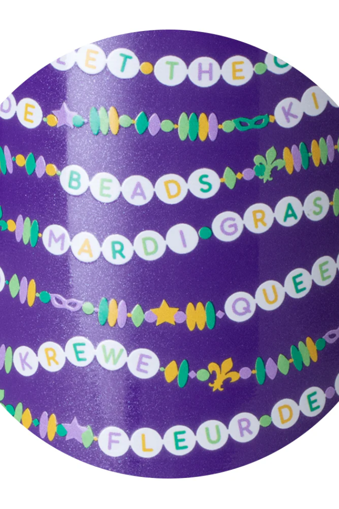 Cold sips, no sweat! π§ Cue the beads! Embrace your Mardi Gras Era with these festive friendship bracelets on glitter lilac background.