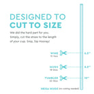 Compatible with all Swig tumblers and fits most other standard drinkware brands. Straws can be cut to size using the diagram featured on the back of the packaging. Pull gently when removing the protective cap to avoid damage.