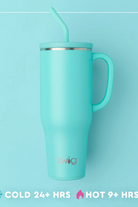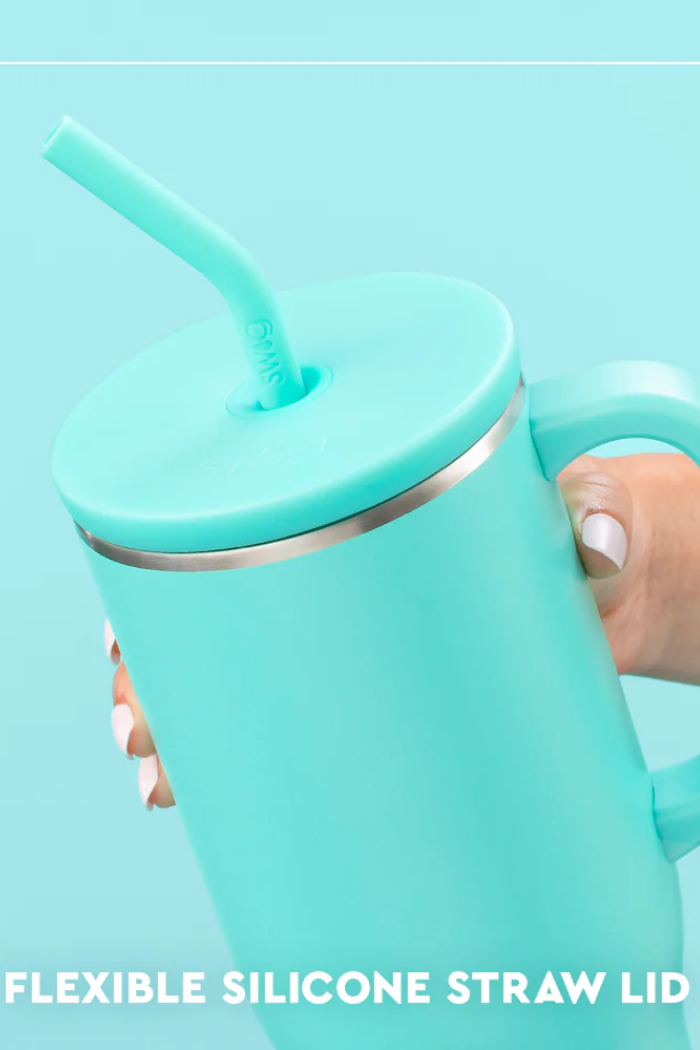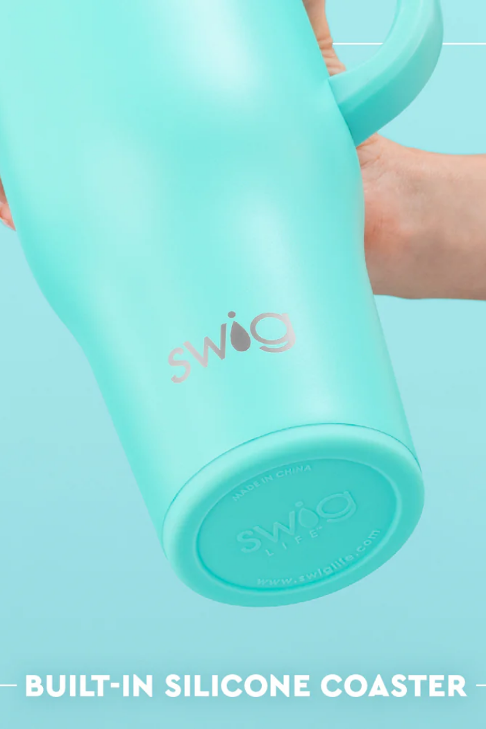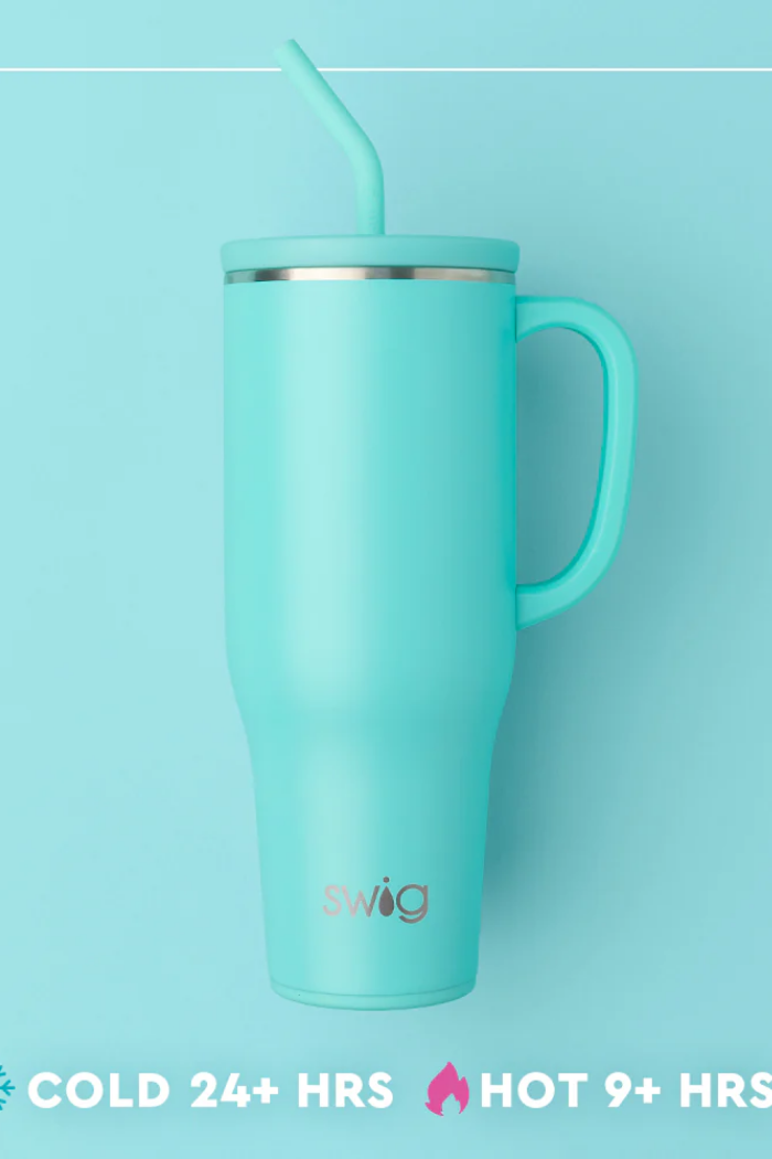 Hydrating has never been easier with our 40oz Insulated Mega Mug! A cup holder-friendly frame, a comfort-grip handle, and a plastic straw with a silicone flexi-tip all come together to create your new favorite Swig.